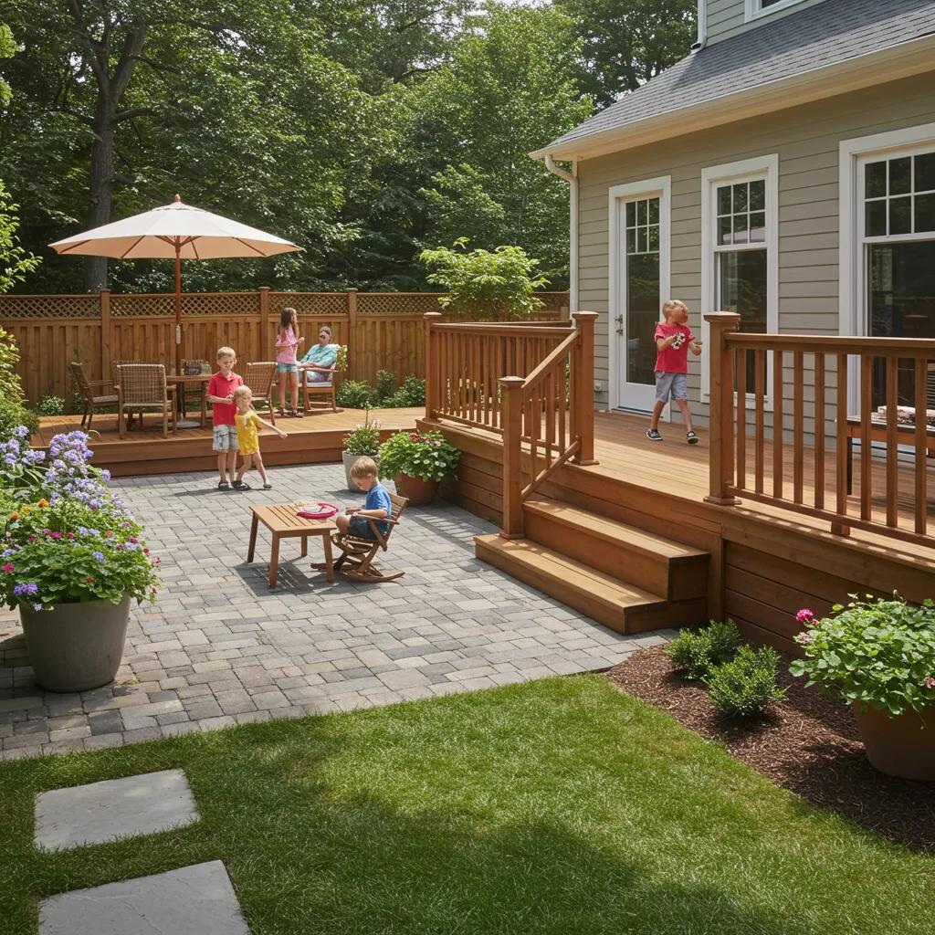 Design multi-functionality by zoning areas with subtle elevation changes, varied flooring textures, and strategic furniture placement. A central deck platform can host dining tables, while adjacent paver sections support lounge seating and fire features.